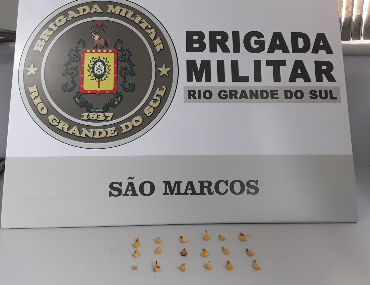 Com o indivíduo foram encontradas 18 pedras de crack Por volta das 14h30 desta quinta-feira a guarnição da Brigada Militar foi acionada para averiguar a situação de um indivíduo de 28 anos que estaria muito agitado e pedindo dinheiro na via pública no distrito de Pedras Brancas.
