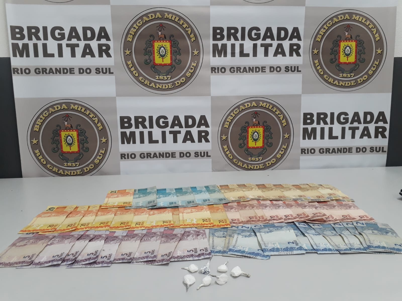 O homem foi abordado na frente de uma boate e com o mesmo foi aprendido sete porções de cocaína e R$ 1.240,00 (um mil duzentos e quarenta reais).