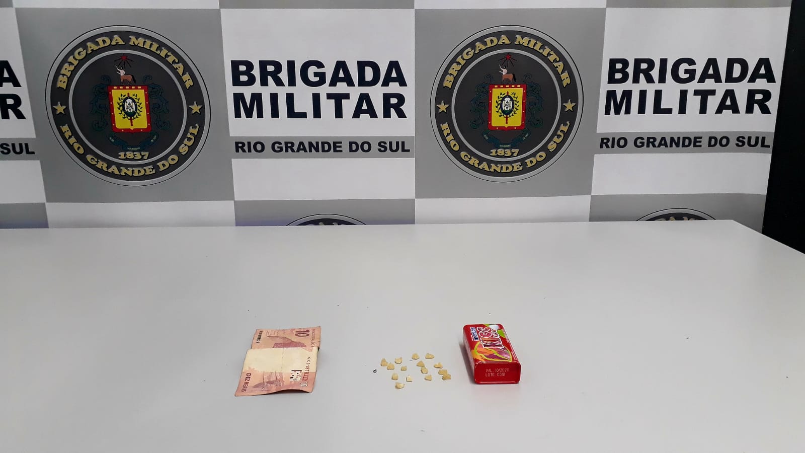 Por volta das 22h30 deste sábado (27) a guarnição da Brigada Militar realizava patrulhamento de rotina na Rua das Nogueiras, no bairro São José, momento que abordou um homem de 23 anos com o qual foi encontrado uma caixa metálica contendo no seu interior 15 pedras de crack.