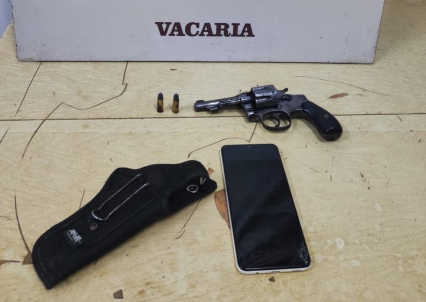 Na noite desta segunda-feira (13/05), uma equipe da Brigada Militar realizou uma abordagem em um veículo Gol no distrito de São Bernardo, em Campestre da Serra. Durante a revista pessoal dos ocupantes do veículo, os policiais descobriram que um deles estava portando ilegalmente um revólver calibre .32, contendo 2 munições, em sua cintura.