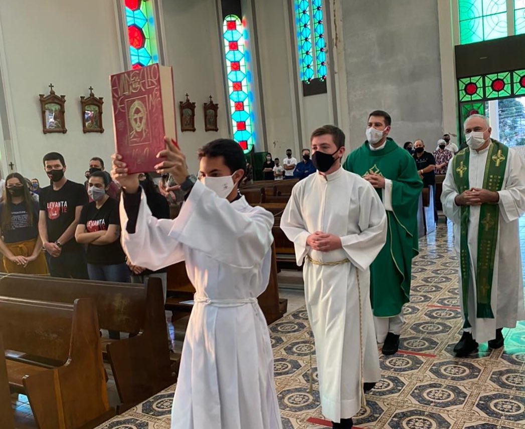 O logo e o lema da Jornada Diocesana da Juventude 2021 foram apresentados no último domingo (26), durante a missa das 18h, na Igreja Matriz de São Marcos. Na celebração, também foram apresentadas a Cruz Peregrina e o ícone de Nossa Senhora, que são os símbolos da Jornada da Juventude. Neste ano, o encontro da juventude católica irá seguir o lema que foi escolhido pelo Papa Francisco: “Levanta-te! Eu te constituo testemunha do que viste!” (cf. At 26,16).