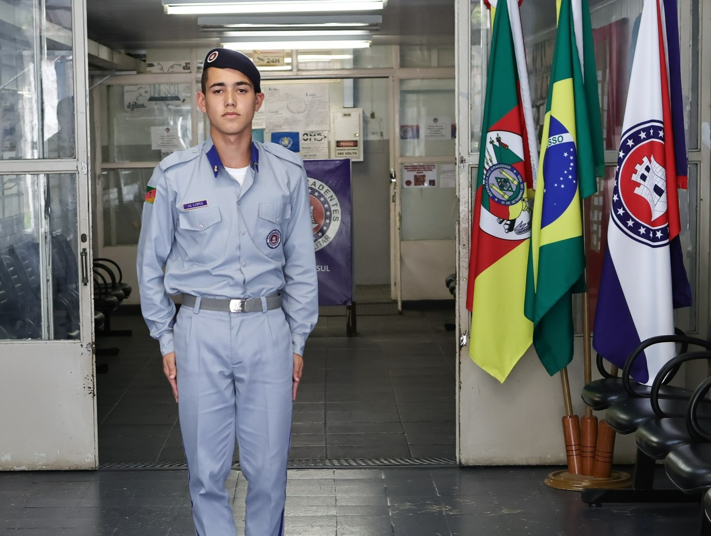 Pedro Migotto Lopes tem 15 anos e é filho de policial, ele se formou no último dia 13 de abril na instituição pertencente a Brigada Militar.