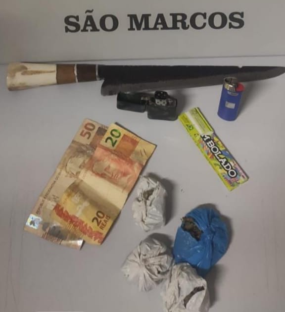 Menor foi apreendido com faca e droga neste domingo em São Marcos
