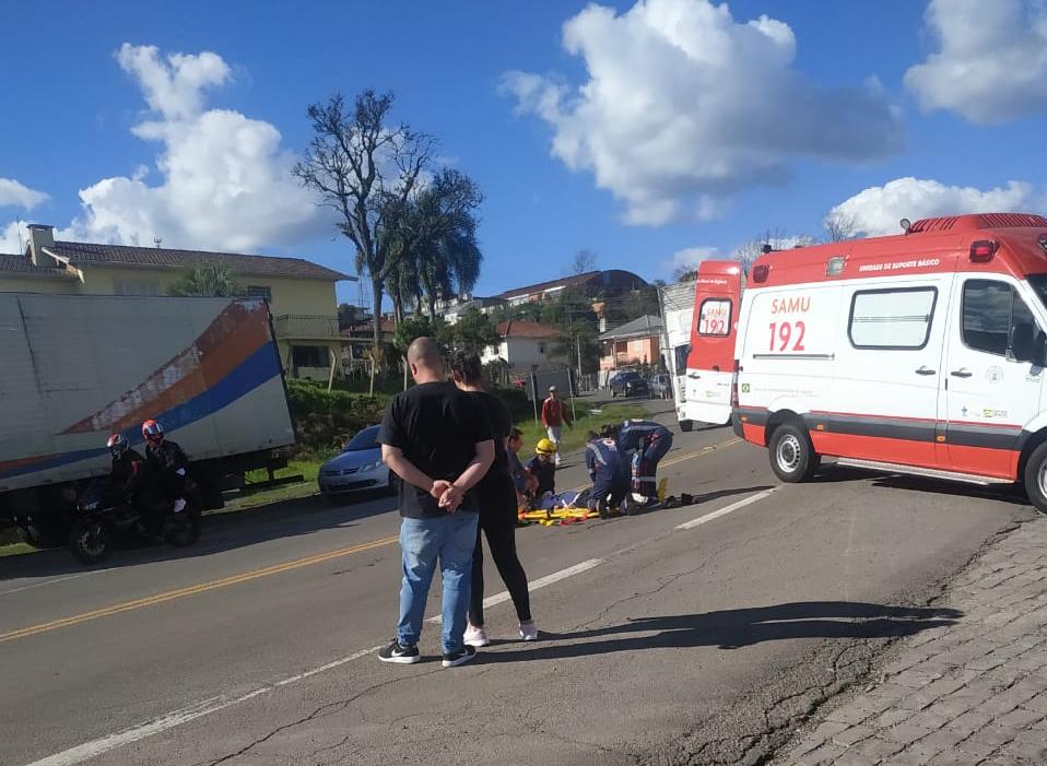 Por motivos desconhecidos, um casal de moto caiu na via. O rapaz de 17 anos apresentava fraturas nas duas pernas e escoriações, já a jovem de 16 anos apresentava um corte no joelho direito e escoriações. Ambos estavam conscientes e foram encaminhados ao hospital. A PRF não tinha registro da ocorrência.