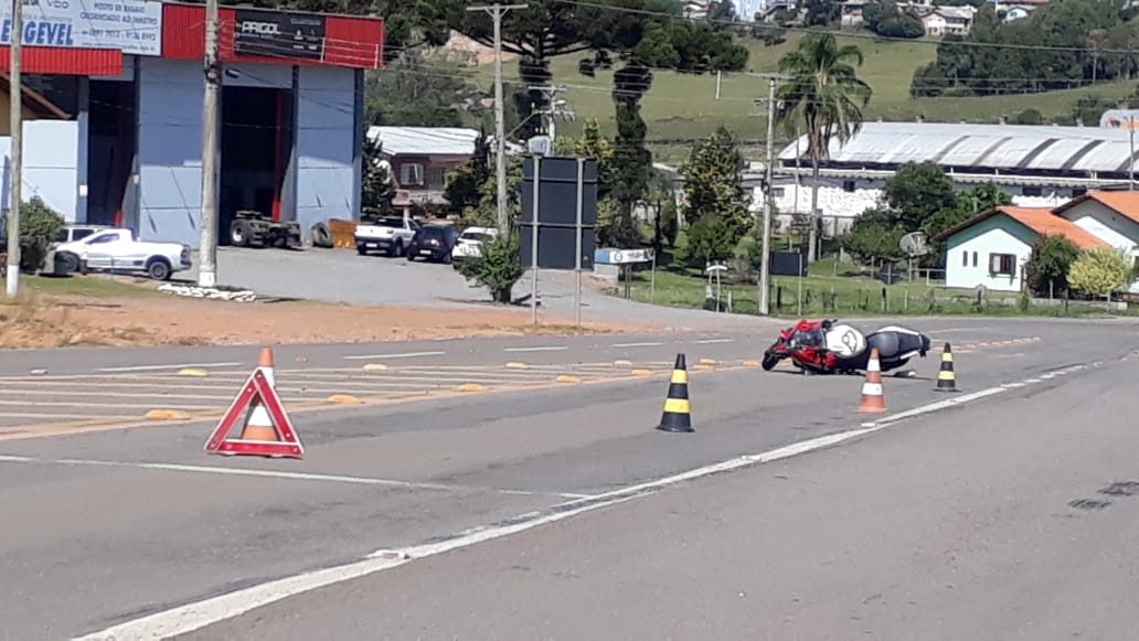 Uma colisão envolvendo um automóvel e uma moto resultou em uma pessoa ferida no início da tarde desta segunda-feira (30). Conforme registro do Samu, a equipe foi acionada por volta das 13h30 para atender o acidente no km 112 da BR 116, em frente a igreja do Bairro Michelon.