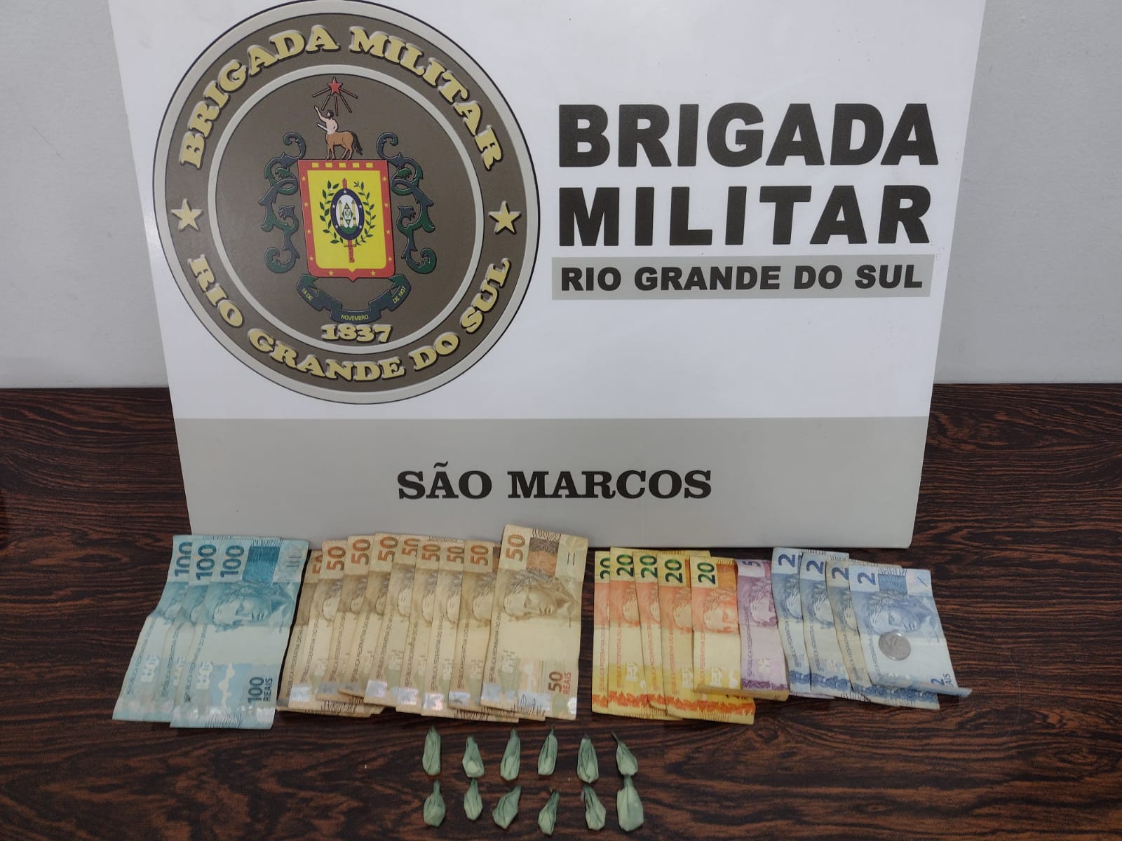Ao realizar a busca pessoal foi localizado no interior de uma pochete 12 porções de cocaína e a quantia de R$ 863,50. A motocicleta foi recolhida ao guincho credenciado. O homem recebeu voz de prisão e o mesmo foi conduzido até a Delegacia de São Marcos onde foi lavrada a prisão em flagrante por tráfico de entorpecentes.