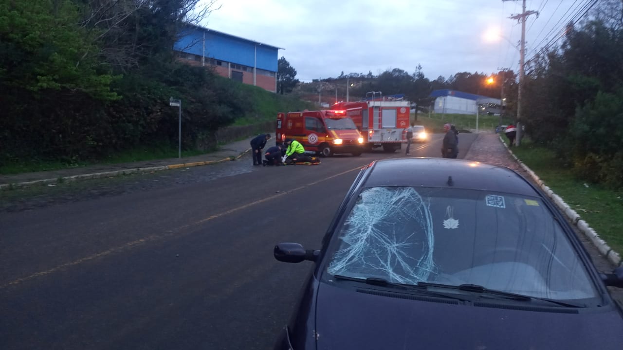 O acidente ocorreu por volta das 7 horas no acesso ao loteamento Colina Sorriso. A vítima foi atingida por um veículo Ford/Ka e caiu sobre a via. Ela apresentava ferimentos no rosto e queixava-se de dores pelo corpo.