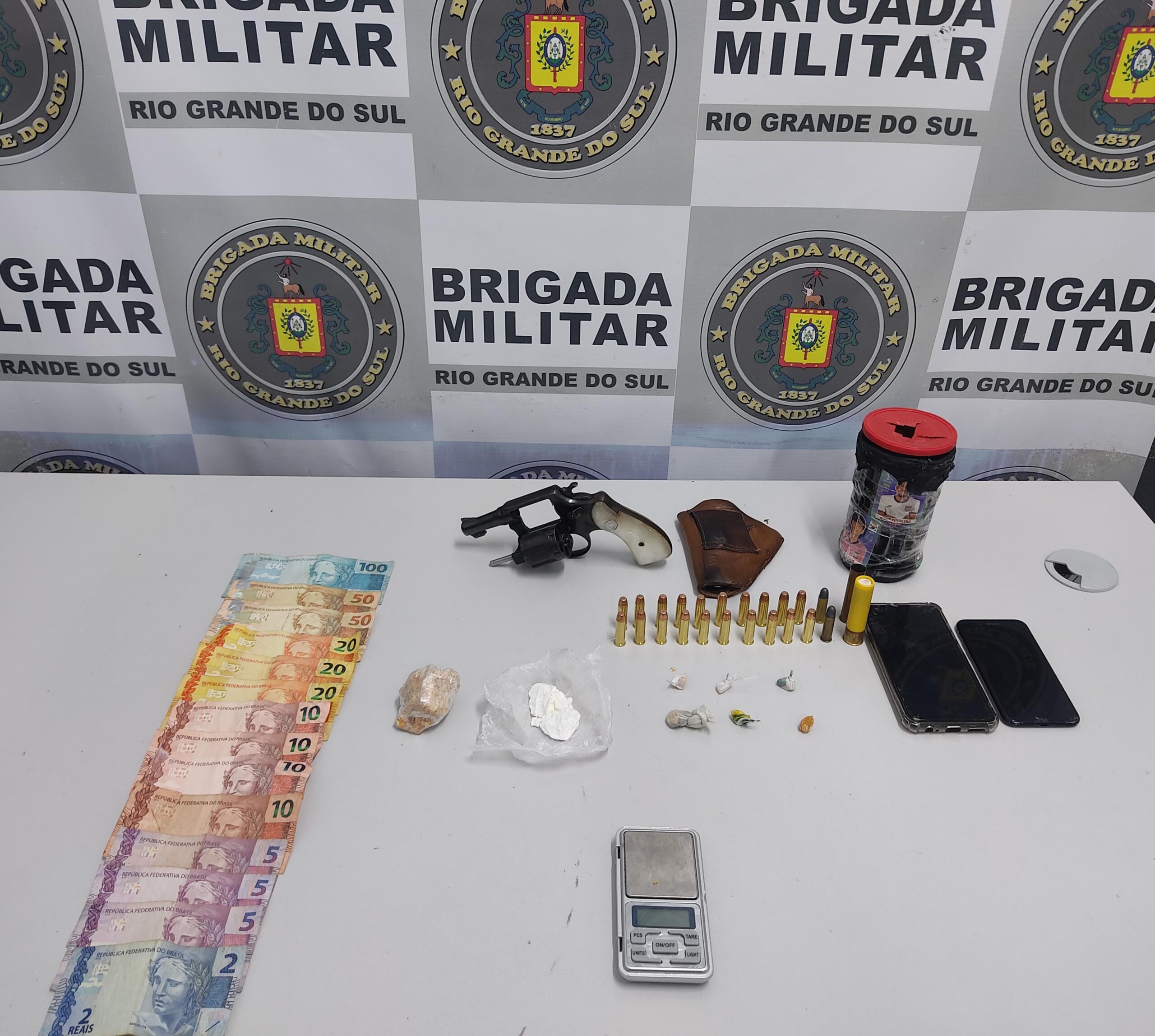 Ao abordarem um homem de 32 anos e um usuário de 39 anos, a equipe encontrou substâncias ilícitas, incluindo 17.20g de cocaína, 57.50g de crack, além de uma balança de precisão. O suspeito estava armado, portando um revólver Taurus calibre 38, acompanhado de 24 munições e 2 cartuchos de calibres 20 e 32.
