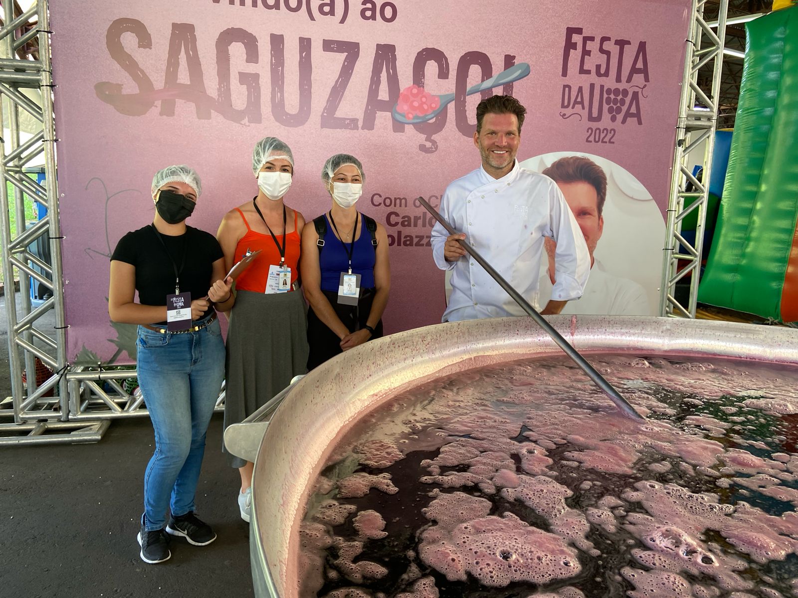 Já o Saguzaço marcará o domingo, 25, no mesmo horário. Sob o comando do chef Carlos Bertolazzi, cerca de uma tonelada da deliciosa sobremesa será disponibilizada aos visitantes sem custo. O tradicional e inconfundível creme branco, é claro, acompanha o doce. Para o preparo do sagu, serão utilizados 250 litros de vinho bordô seco, 50 litros de suco de uva tinto, 60 kg de sagu, 3 kg de cravo, 2 kg de canela e 80 kg de açúcar.