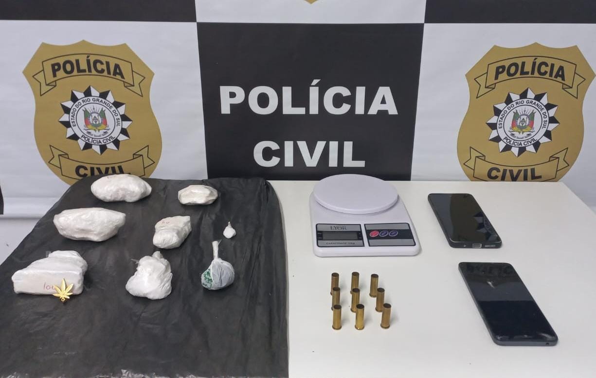 No local, situado na Linha Santo Henrique, os agentes apreenderam mais de 450 gramas de cocaína, além de estojos de munição de arma de fogo, celulares, balança de precisão e uma pequena quantidade de maconha.