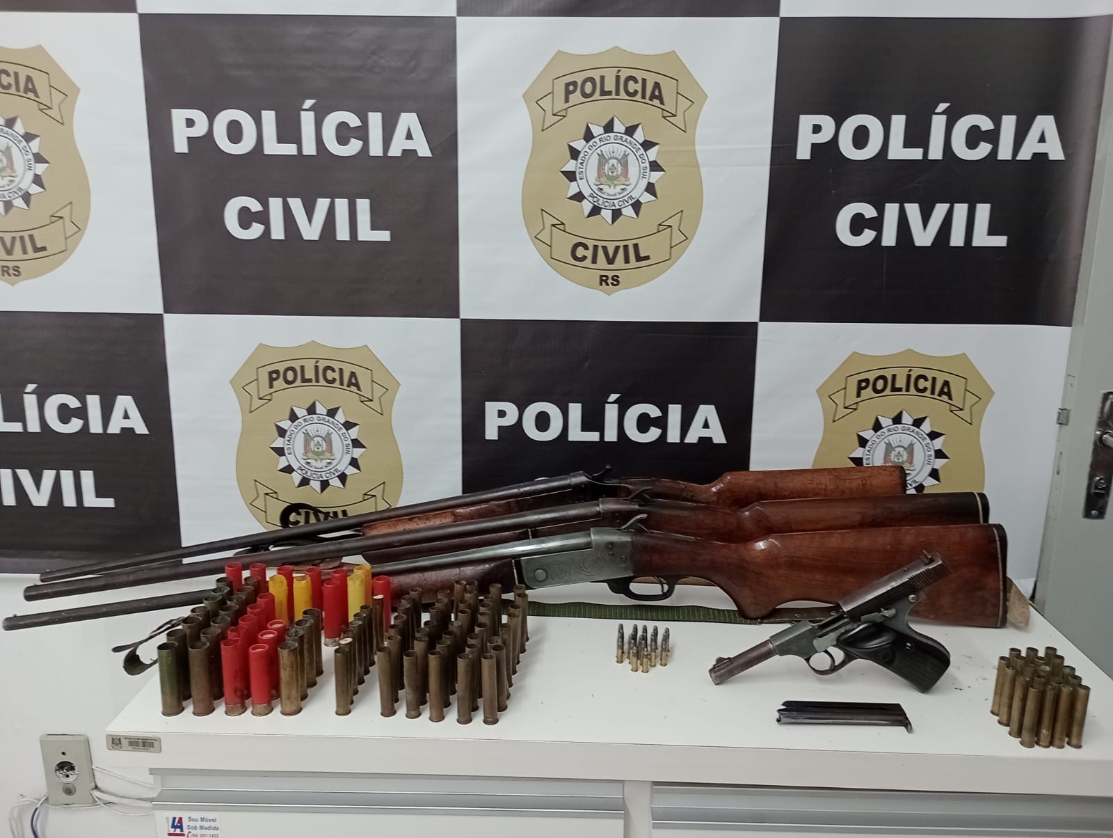 A ação ocorreu na Linha Riachuelo, no interior do município, durante o cumprimento de um mandado de busca e apreensão na residência do suspeito, de 63 anos. Na manhã desta quarta-feira (19/03), a Polícia Civil de São Marcos prendeu em flagrante um homem de 63 anos por posse ilegal de armas de fogo.