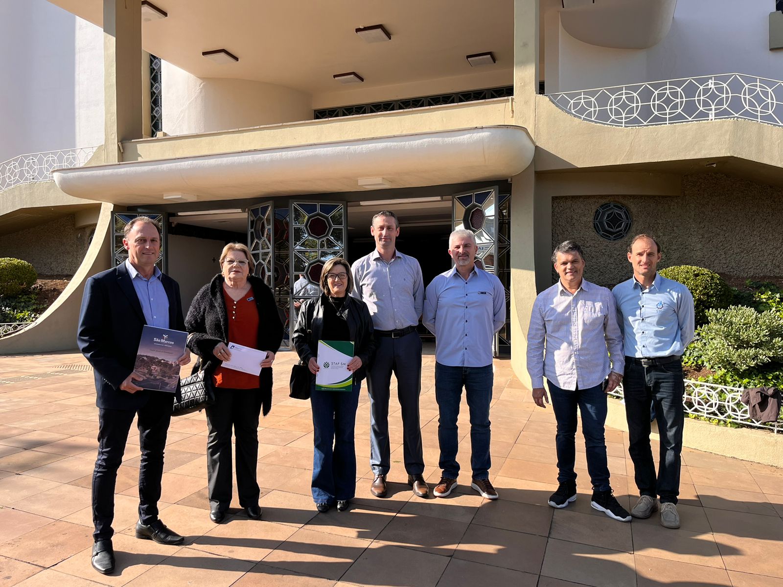 A comitiva é liderada pelo Prefeito Evandro Kuwer e inclui representantes de entidades chave, como a Câmara de Dirigentes Lojistas (CDL), através de Marta Ballardin Mioto, a presidente do Sindicato dos Trabalhadores Agricultores Familiares (STAF), Sandra Meneguzzo, o vice-presidente da Associação dos Motoristas (AMSM), Ramon Gobbi, acompanhado por Arisoli Macedo, e o vice-presidente da Câmara de Indústria, Comércio e Serviços (CIC), Fabrício Michelin. O presidente da Câmara de Vereadores, Ronaldo Giotti, também faz parte da delegação.