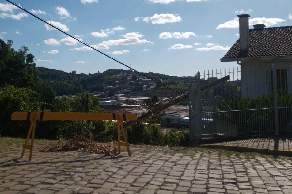 Na tarde desta sexta-feira (7) o São Marcos Online recebeu fotos de um poste caído sobre a grade de uma residência na Rua José Bertelli, no bairro Industrial.