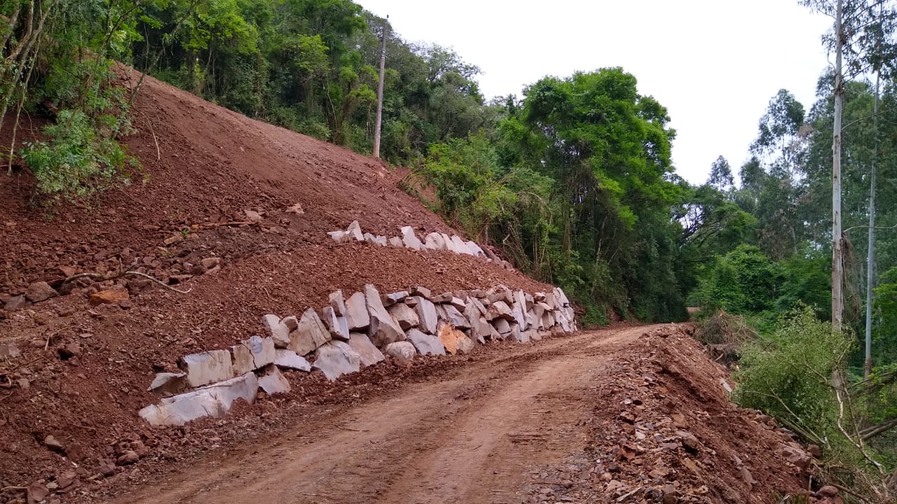 Conforme dados da assessoria de comunicação da prefeitura, esta manhã foi colocado cascalho nos cerca de 40m do trecho. Já no dia de ontem foi finalizado muro de contenção para evitar futuros deslizamentos de terra. O serviço de contenção (colocação de pedras e aterro) foi realizado pela empresa terceirizada.