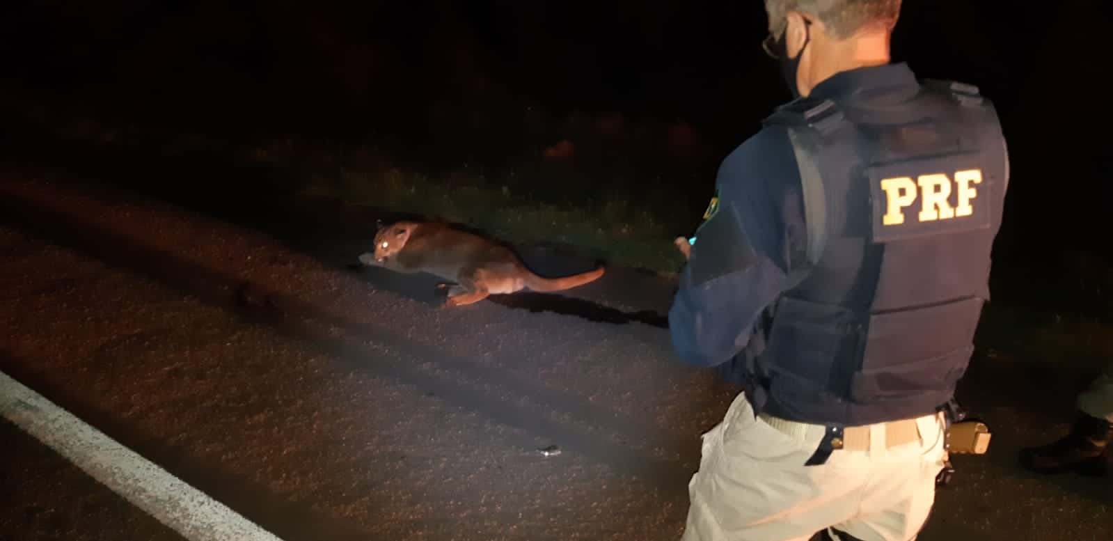 Animal silvestre foi atropelado na BR 116, em Vacaria, próximo à divisa com Campestre da Serra