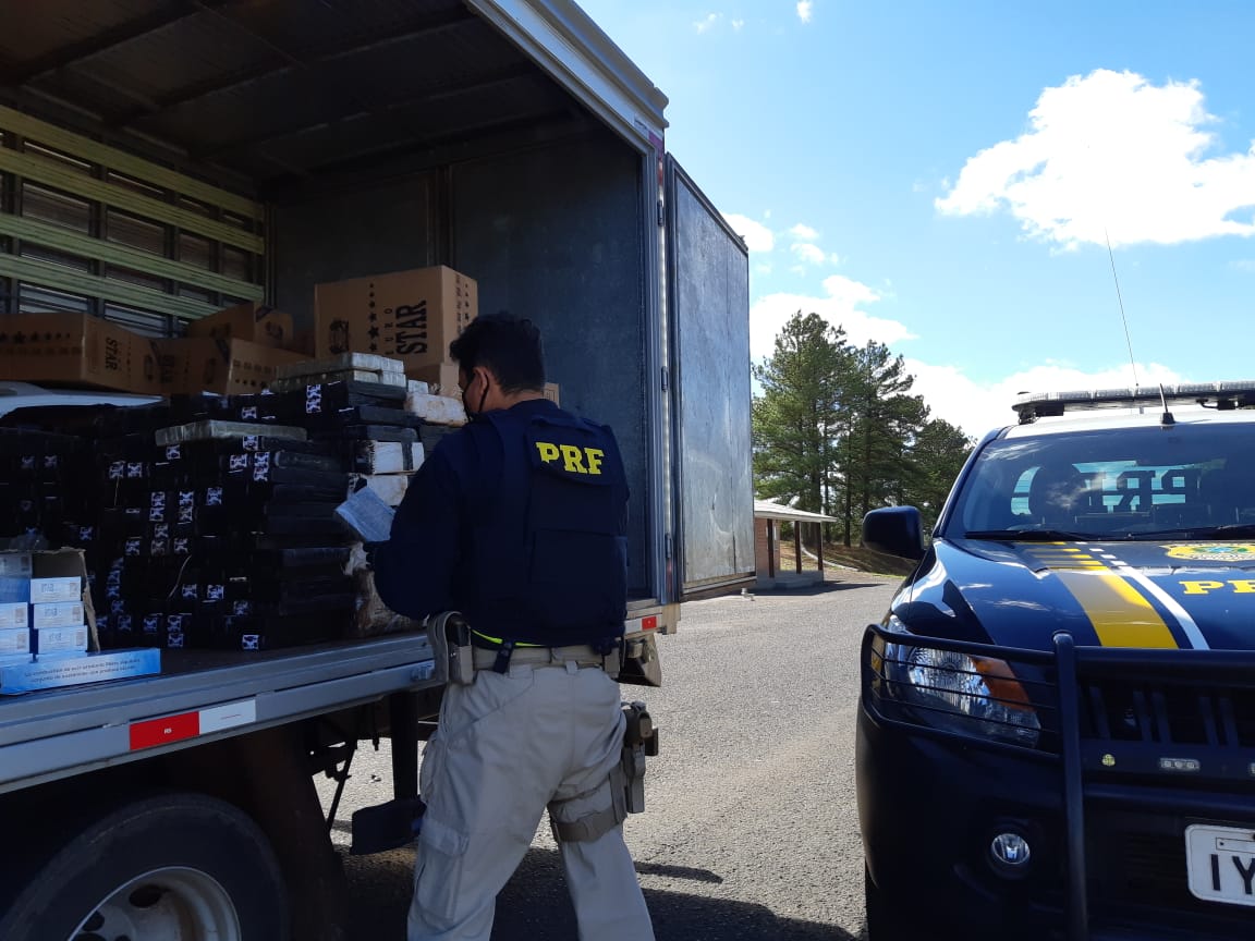 Na manhã desta terça-feira (26), na BR 285, em Vacaria, a Polícia Rodoviária Federal apreendeu um caminhão roubado no Paraná carregado com 660 quilos de maconha e 70 mil maços de cigarros contrabandeados do Paraguai.