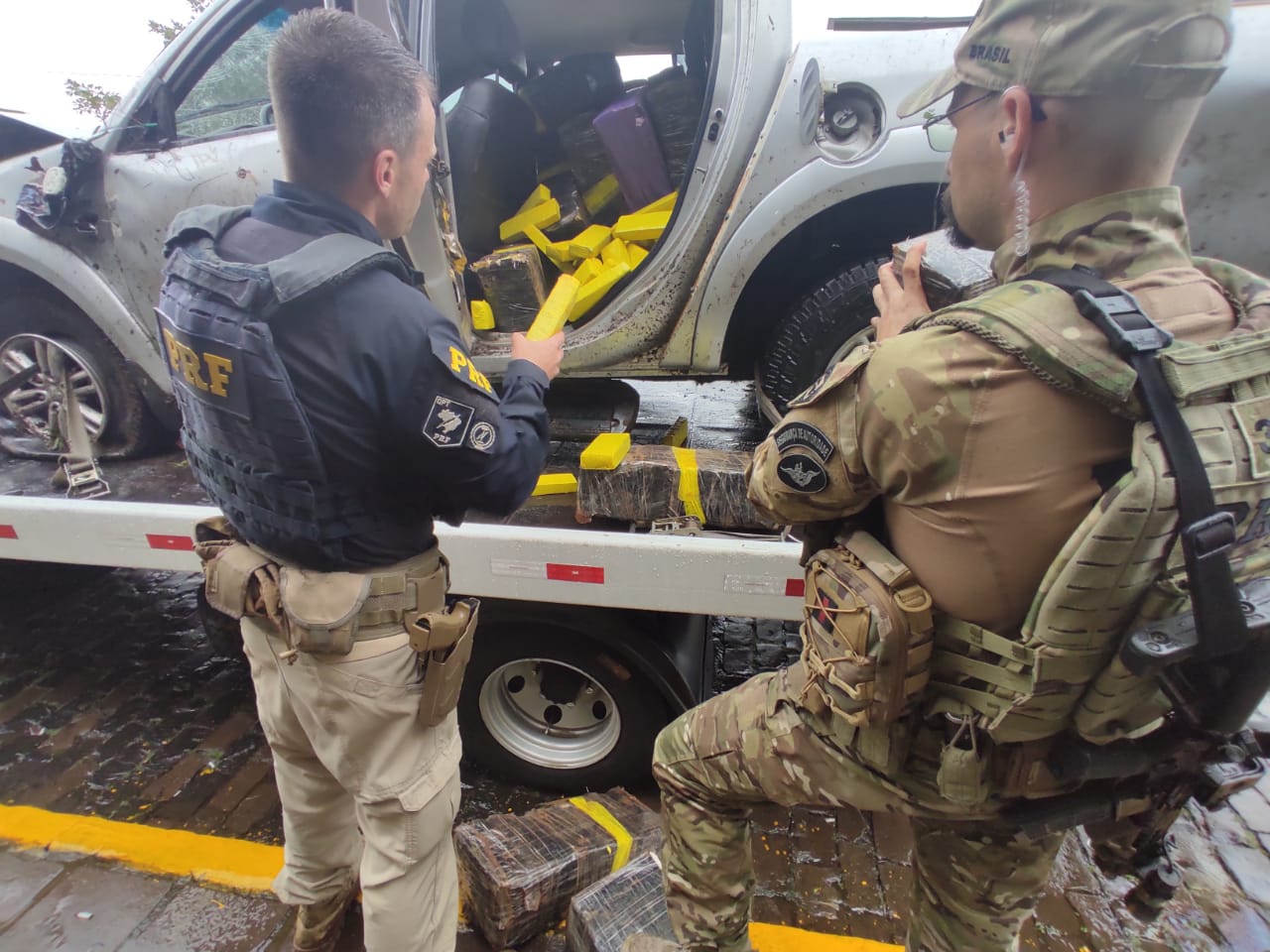 Na L200 estava apenas o motorista de 26 anos, natural de Cascavel/PR. Dentro do automóvel os PRFs encontraram diversos tabletes de maconha, que foram pesados posteriormente, totalizando pouco mais de 1 tonelada. Também foram localizadas duas placas falsas, pertencentes a uma L200 com as mesmas características do veículo utilizado.