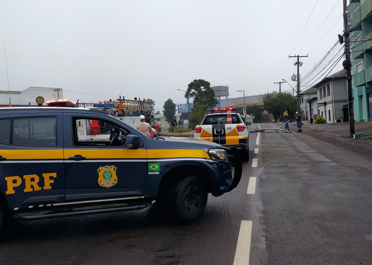 Não há feridos e a equipe da RGE já está no local para corte da energia e apoio na remoção do poste da via.