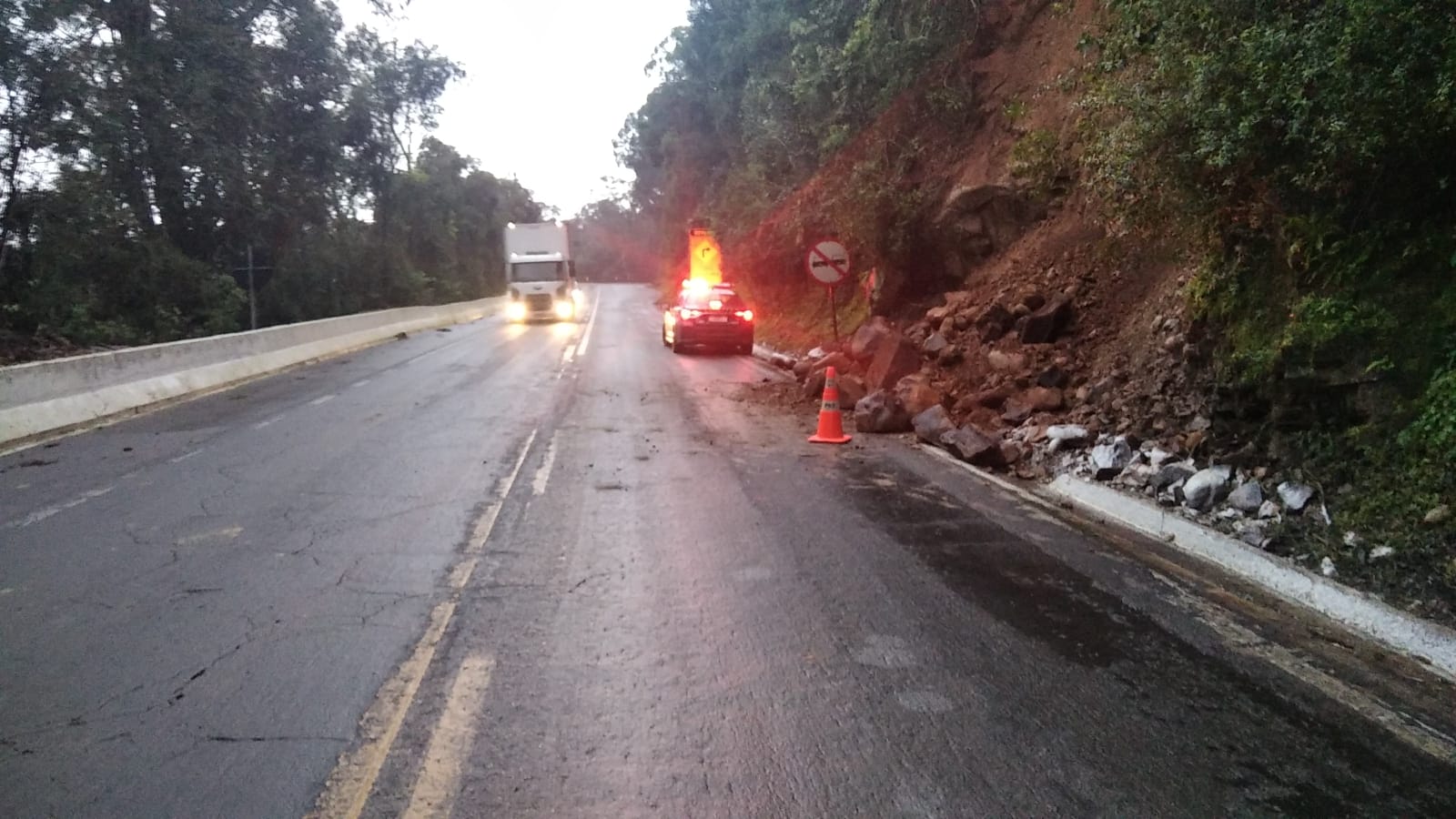 No início da manhã desta terça-feira (16) a Polícia Rodoviária Federal registrou uma queda de barreira no km 129 da BR 116, em Pedras Brancas. O local vem registrando instabilidade há algum tempo e em dias de chuva as pedras caem sobre a via.