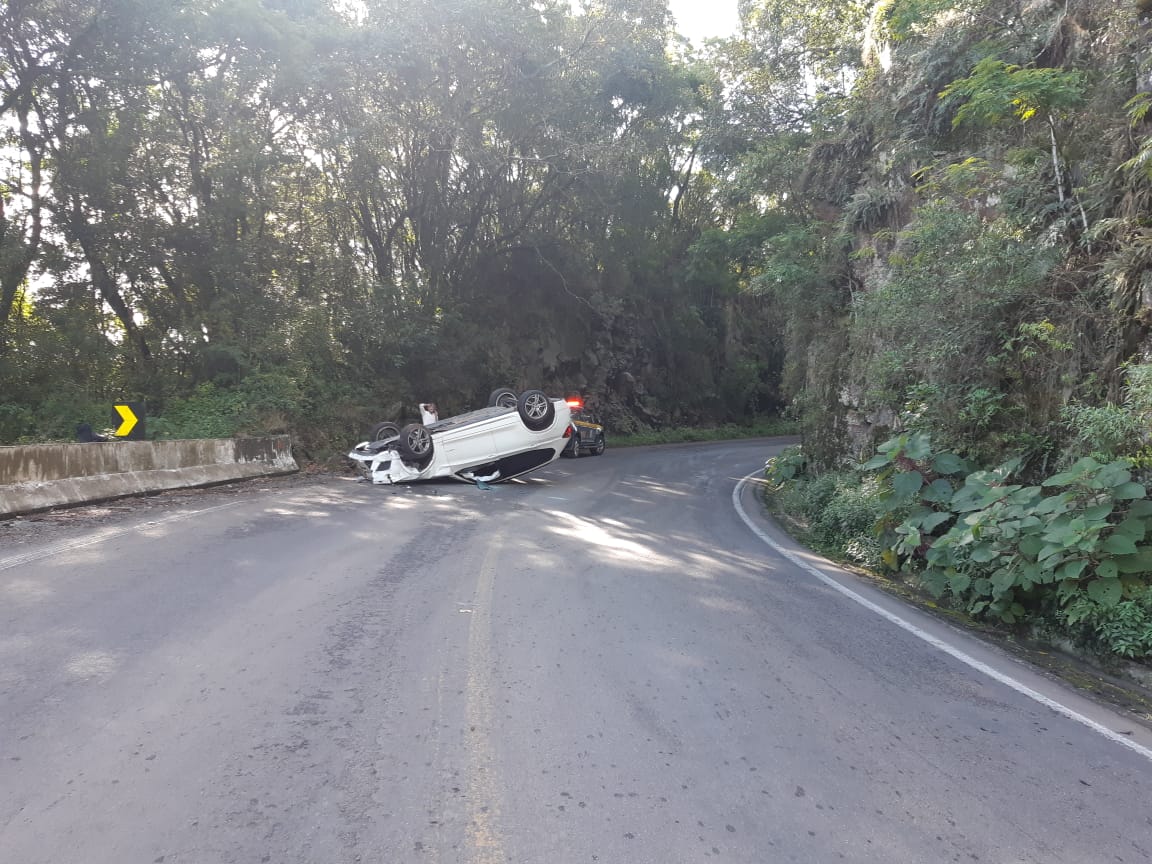Conforme informações da PRF, um veículo BMW/X3 com placas de Caxias do Sul, seguia para o seu sentido de origem quando o condutor perdeu o controle em uma curva e capotou.