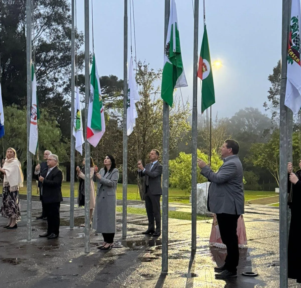 Durante o ato solene, o prefeito Volmir Rech representou São Marcos no hasteamento das bandeiras municipais, ao lado de prefeitos e autoridades de outros 23 municípios da Serra Gaúcha. A presença de São Marcos no evento reforça o elo histórico e cultural da cidade com a colonização italiana, que moldou tradições, valores e o desenvolvimento da região.
