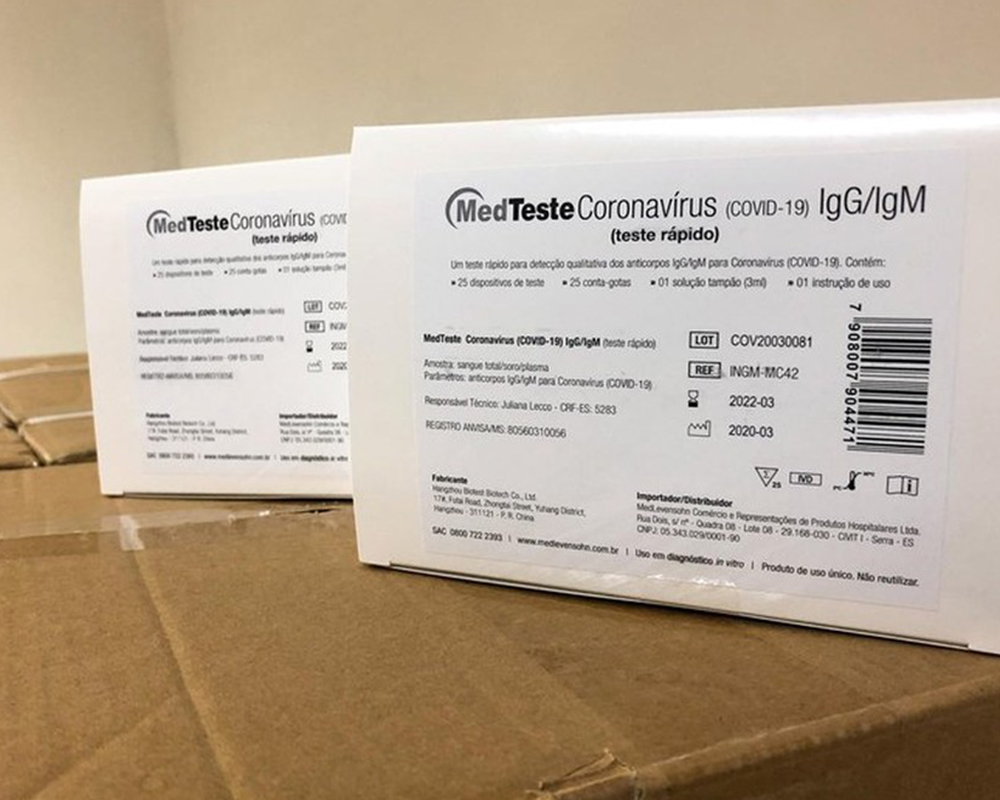 60 testes foram enviados ao município pelo Ministério da Saúde (MS) e os outros 100 foram adquiridos pela Secretaria Municipal de Saúde Seguindo protocolo do Ministério da Saúde e considerando a quantidade encaminhada, os testes, feitos através de amostra de sangue, serão utilizados em casos específicos.