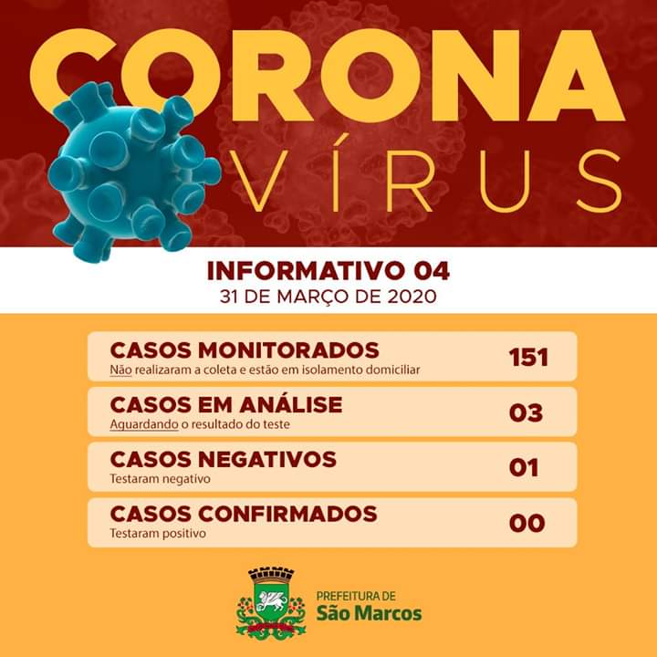Conforme boletim com dados atualizados divulgado hoje pelo Centro de Operações de Emergência (COE) da Secretaria Municipal de Saúde, em São Marcos, mais 3 pessoas realizaram os testes para Covid-19.