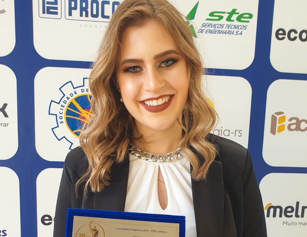 Vanessa Piroli, 25 anos, é estudante da UCS. Solenidade promovida pela Sociedade de engenharia do Rio Grande do Sul ocorreu este mês em Porto Alegre