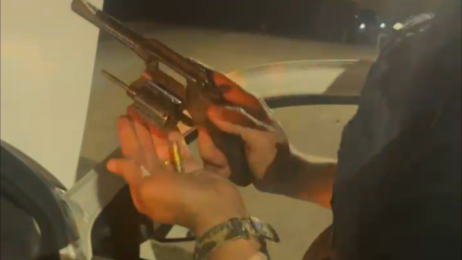 O trio apresentou histórias contraditórias sobre a origem de sua viagem e sobre possíveis objetos ilícitos no veículo. Após vistoria, o revólver foi localizado.