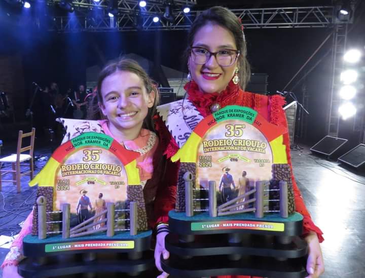 No primeiro dia do 35º Rodeio Crioulo Internacional de Vacaria, realizado neste sábado (03), o destaque ficou por conta do concurso para a escolha da Mais Prendada Prenda e Mais Prendada Prendinha do evento. Entre sete candidatas participantes, sendo quatro na categoria de Mais Prendada Prenda, Rafaela Borges Vieira, representante do CTG Porteira da Serra de São Marcos, conquistou o título de Mais Prendada Prendinha.