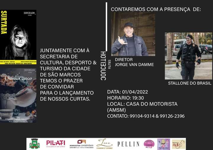 A entrada é gratuita e haverá presença dos atores Jorge VAN Damme e Stallone Brasil, que participaram da produção dos curtas. A exibição tem o intuito de valorizar cada vez mais os artistas locais.