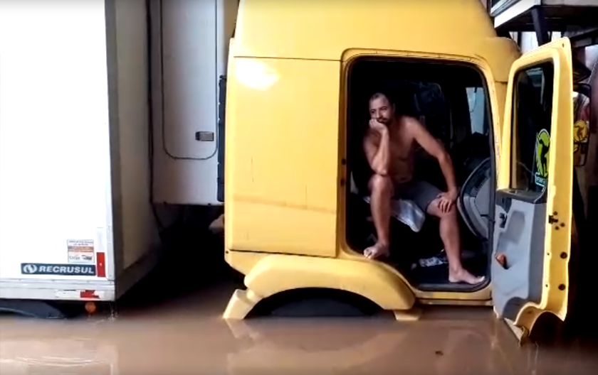 “A situação é de caos total, a água subiu muito rápido e quando acordei por volta das 6h de segunda a água já estava na porta do caminhão, pra mais de metro e meio, e isso que estou em um local mais alto. É triste de ver, muitos prejuízos, só danos materiais, mas alguns caminhões terão perda total” retratou Anderson Ferreira de 35 anos, que está com caminhão da Transportes Serafim.