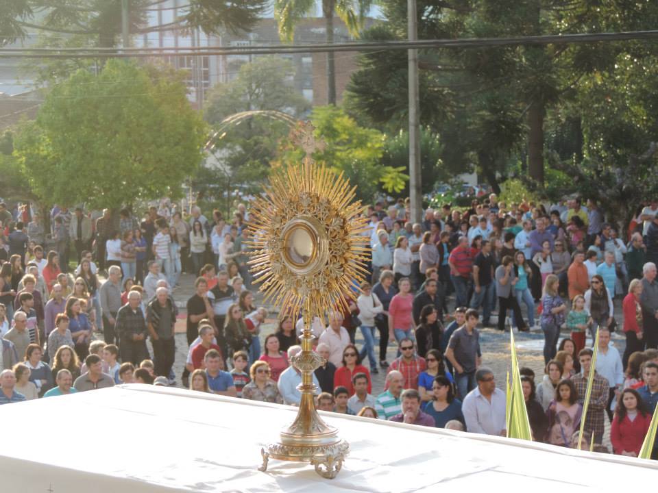 Respeitando a orientação de evitar aglomerações, não haverá a tradicional missa campal seguida de procissão. Conforme a paróquia, às 9h haverá celebração da missa de Corpus Christi no interior da igreja com transmissão pelo Facebook da Paróquia.