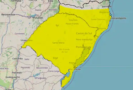 O Instituto Nacional de Meteorologia (Inmet), vinculado ao Ministério da Agricultura e Pecuária, emitiu, nesta segunda-feira (3), dois alertas meteorológicos de nível amarelo indicando perigo potencial para Rio Grande do Sul e Santa Catarina.
