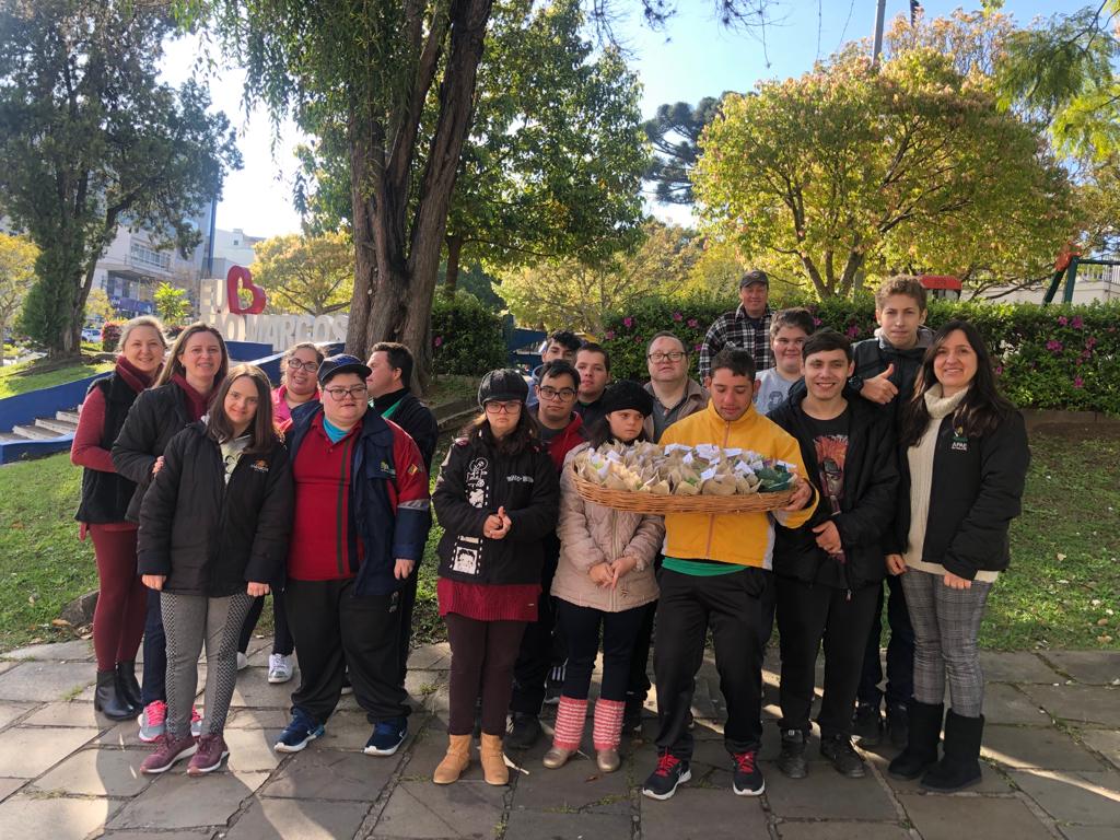 Na manhã desta segunda-feira os alunos estiveram no centro da cidade fazendo a distribuição de mudas, uma ação do projeto do Sicredi “Plantar e semear com amor”. Já no turno da tarde os alunos participam de uma ação do Interact na Apae.