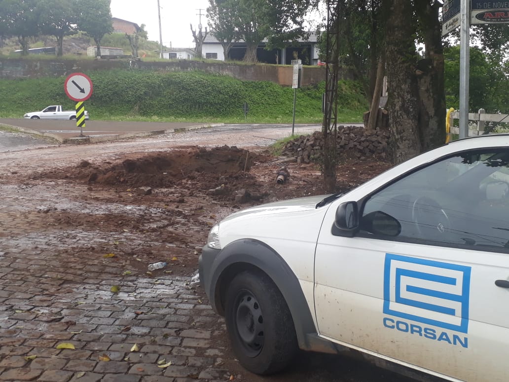 O local passa por obras da prefeitura que amplia rede de esgoto. Conforme Andrigo Biasotto, Secretário Municipal de Planejamento, na última semana o local foi aberto para sondagem de viabilidade para ampliação da rede, pensando no melhor escoamento da água. Durante os trabalhos uma adutora da Corsan foi rompida. Técnicos realizaram o reparo e o local que ficou isolado por um período e em seguida foi depositado material e feita compactação.