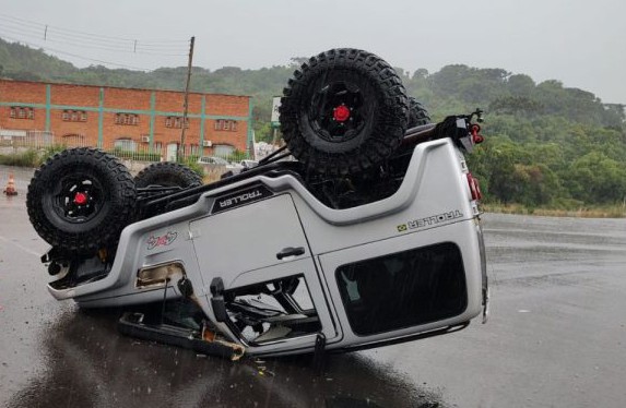Bandidos roubaram uma troller e capotaram durante a fuga Na tarde desta terça-feira (10), uma tentativa de roubo frustrada acabou em um acidente de trânsito, na ERS-122, em Flores da Cunha. O fato aconteceu por volta das 15h30min.