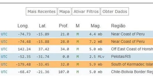 Terremoto de 2,5 graus na escala Richter foi registrado em Pelotas
