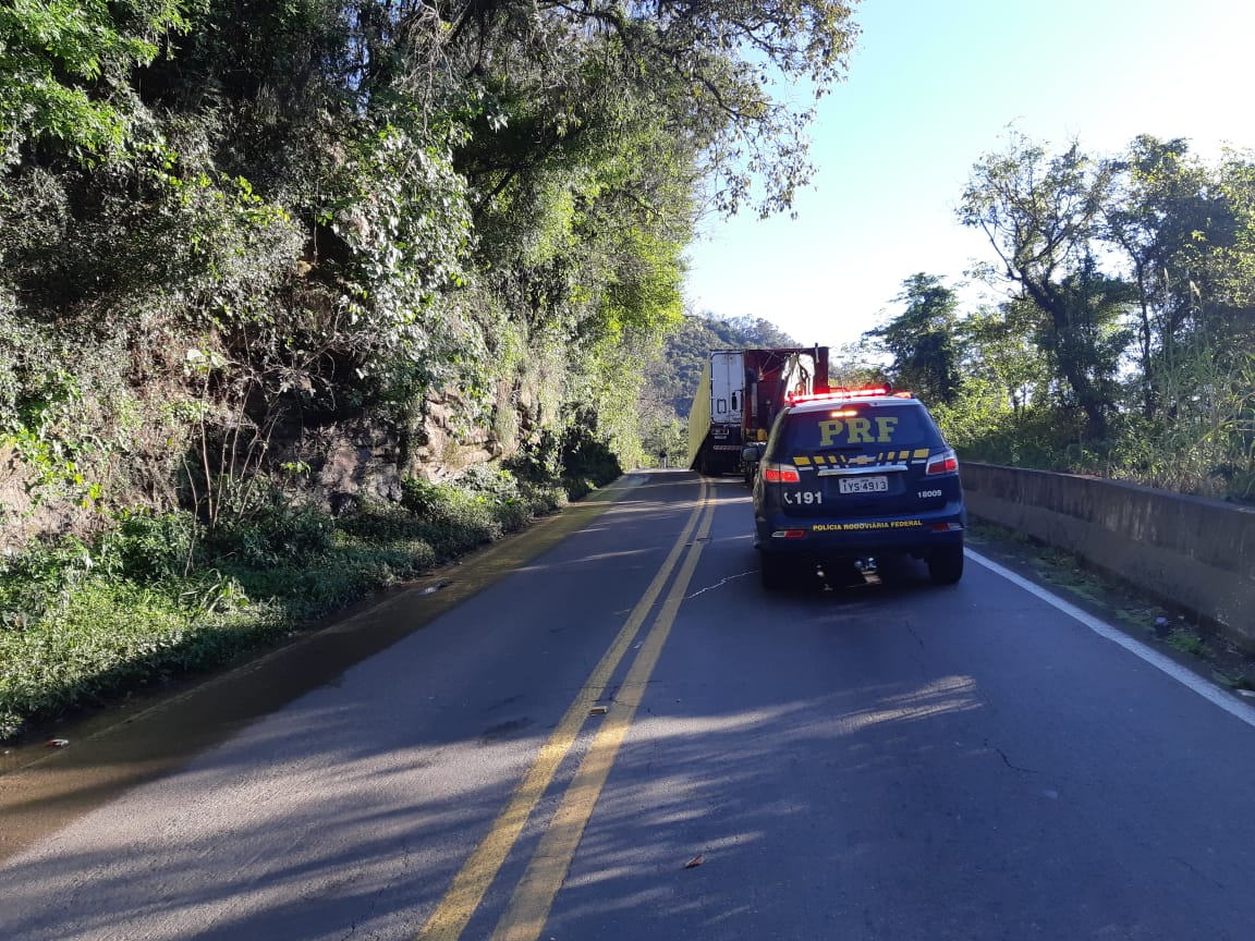 Trânsito bloqueado no km 163 da BR 116, em Nova Petrópolis