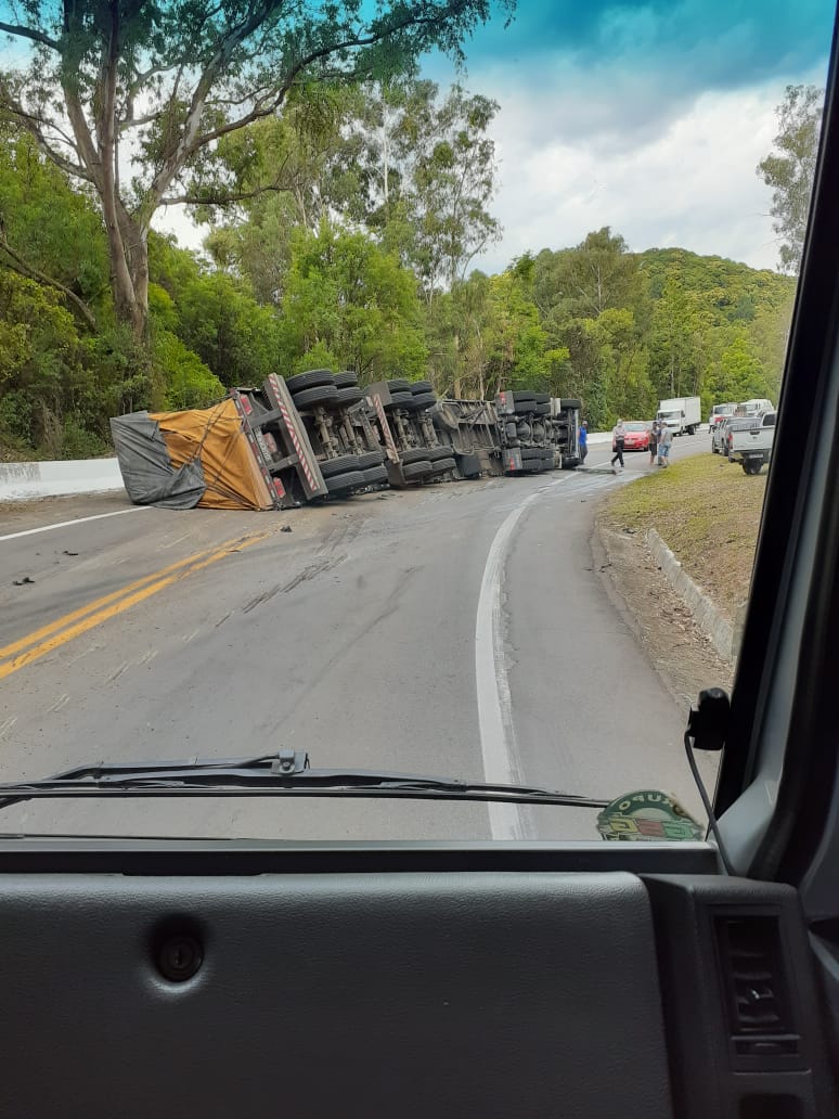 Conforme informações repassadas por um leitor ao São Marcos Online, um caminhão tombou na BR 116 entre a grutinha e a Parada Cristal.