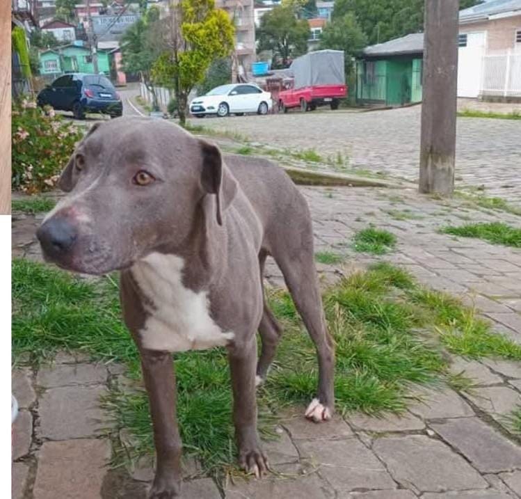 Um cachorro desaparecido em Caxias do Sul está sendo procurado pelo tutor após informações indicarem que ele pode ter sido resgatado por moradores de São Marcos. O animal, um macho adulto de aproximadamente 6 anos, é uma mistura de vira-lata com pitbull, tem pelagem cinza com peito branco e é de grande valor sentimental para a família.