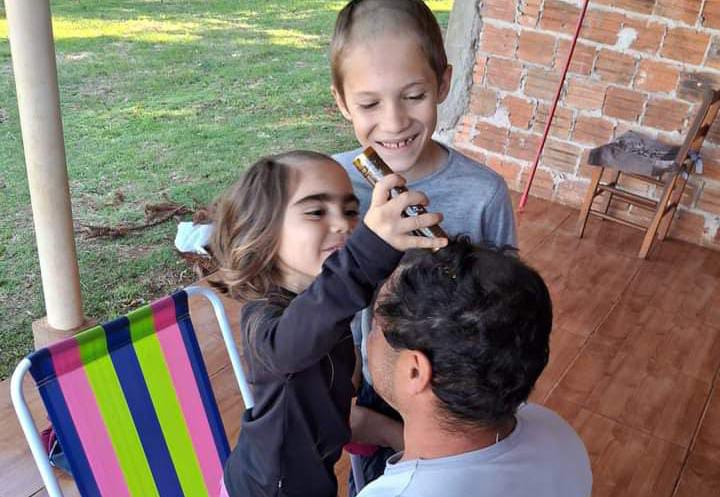 Nesta semana pai (doador) e filha rasparam os cabelos em preparação para a cirurgia que deve ocorrer no dia 20.
