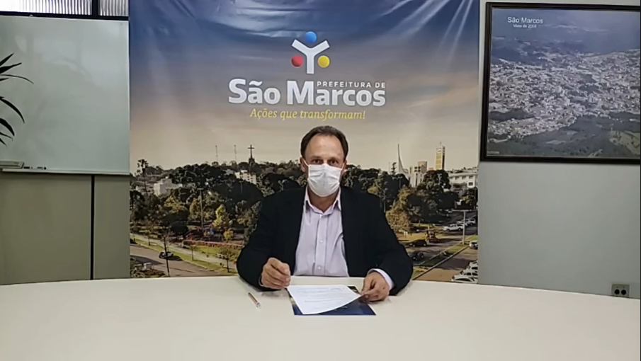 “A partir de amanhã, em São Marcos será obrigatório o uso de máscaras para andar, na rua, ir a supermercado, farmácia, ou qualquer outro lugar. Caso você saia sem máscara e a nossa fiscalização te aborde, você será primeiramente notificado e se for pego novamente será multado, a multa é de R$100”, detalhou o prefeito durante a live.