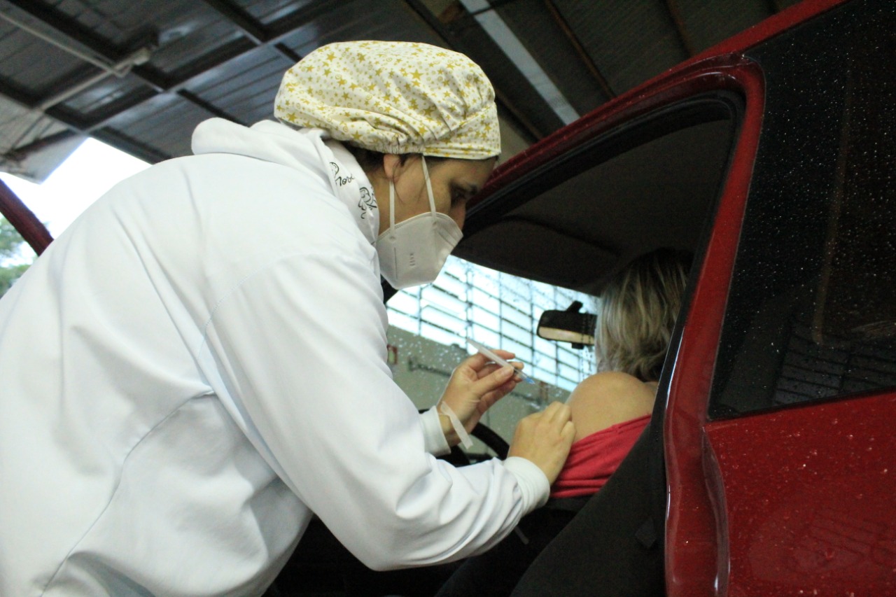 Nesta ação estão sendo utilizadas as vacinas da AstraZeneca. Assim que doses da Coronavac forem enviadas ao município, será priorizada a aplicação da 2ª dose para os idosos.