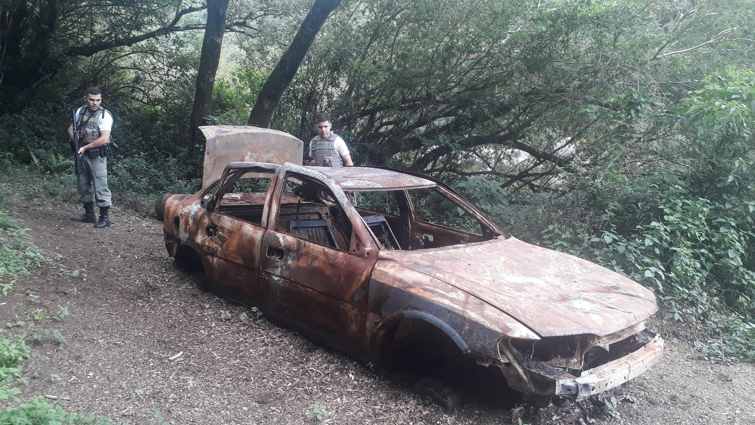 A informação partiu de um leitor do SMO, que tem propriedade nas imediações e encontrou o veiculo nesta segunda-feira (20). O local é de difícil acesso e o carro está no final de uma trilha, em meio a mata.