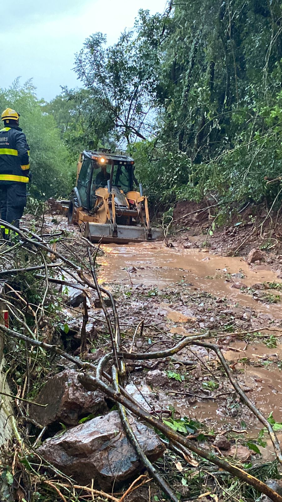 Caso ocorreu na tarde desta quarta-feira, 1 de maio, no km 93 da BR 116, em São Bernardo Um episódio marcou a quarta-feira (1) na BR 116, em Campestre da Serra, quando um deslizamento de terra atingiu um veículo que trafegava pela rodovia, no km 93.