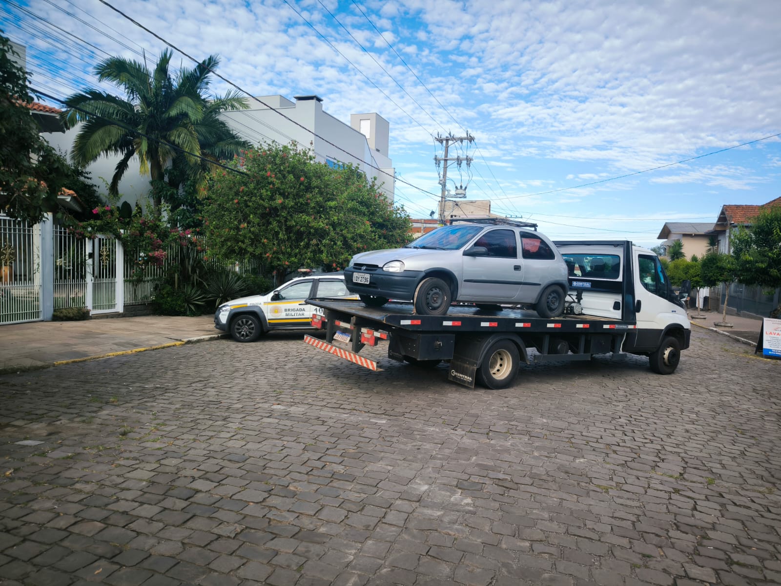 Ao chegarem ao local indicado, os policiais procederam com uma consulta veicular, confirmando que o veículo em questão, um GM Corsa Wind, de cor prata, registrado com placas de Caxias do Sul, estava de fato relacionado a um crime de furto/roubo ocorrido no dia 3 de fevereiro de 2024, na cidade de Caxias do Sul. Diante dessa constatação, o automóvel foi removido por um guincho credenciado ao depósito.