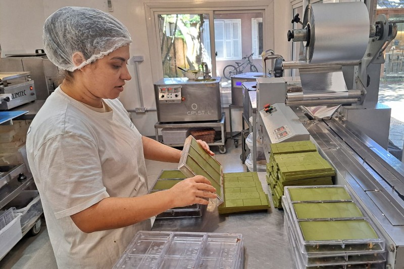 Outro produto bem diferente é o chocolate branco com erva-mate produzido por uma empresa às margens do Guaíba, em Porto Alegre. A Magian Cacao iniciou sua produção, de forma artesanal, em 2015. “Nós começamos devagar, produzindo as primeiras barras aqui no forno de casa, vendendo aos poucos. Em seguida, fizemos o site e começamos a ter pontos de revenda. Dessa forma, fomos ampliando e diversificando a produção”, conta o chocolatemaker André Passow.