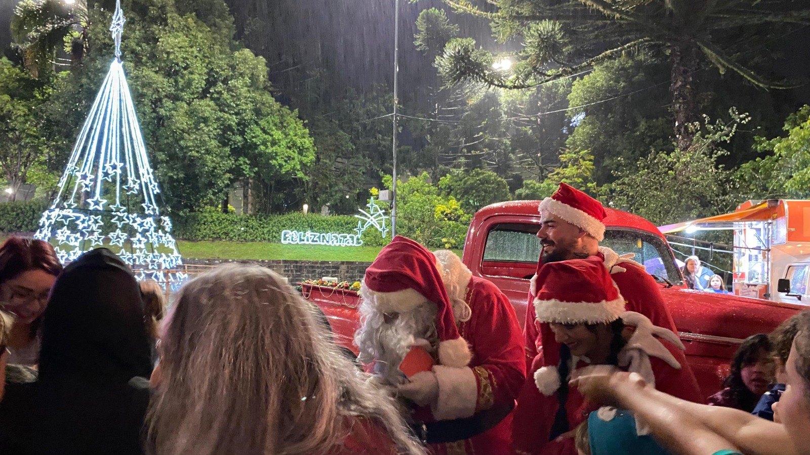 Picape do Papai Noel em São Marcos teve data alterada devido ao mau tempo desta quinta-feira (19)