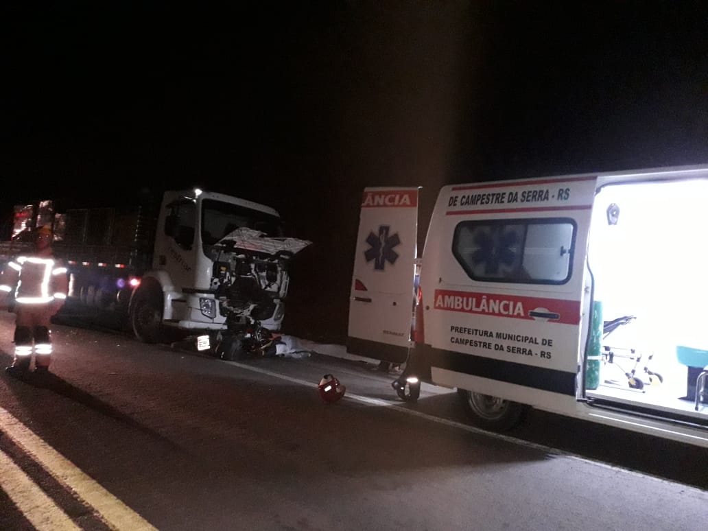 A vítima do acidente ocorrido na noite desta segunda-feira Campestre da Serra foi identificada como Juvenildo Luiz Rech, de 55 anos, ele conduzia uma motocicleta que segundo a PRF, seguia no sentido Vacaria/Caxias e o caminhão no sentido contrário quando, por motivos l desconhecidos, houve a colisão no km 74.